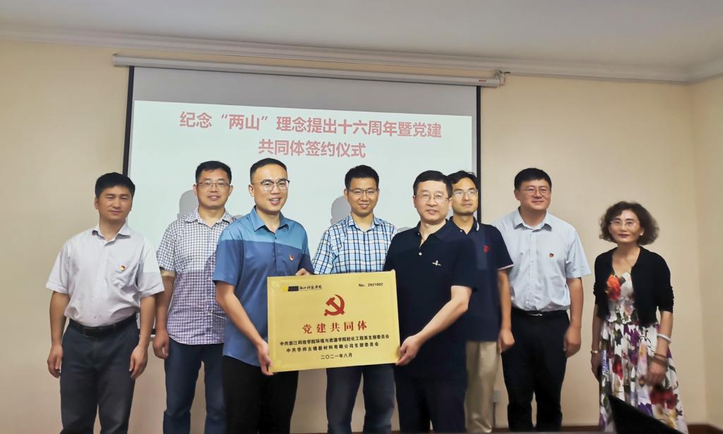 在衢州举办纪念“两山”理念提出十六周年座谈会暨党建共同体签约活动。浙江省循环经济学会秘书长张进、衢江区委组织部/人才办专职副主任胡晨、衢江区农业局副局长翁宇波、龙游县经济开发区党工委委员晏京森、杜泽镇党委书记柴锡根、华邦鼓楼总经理胡丁根、校党委组织部副部长张学金、环资草榴社区